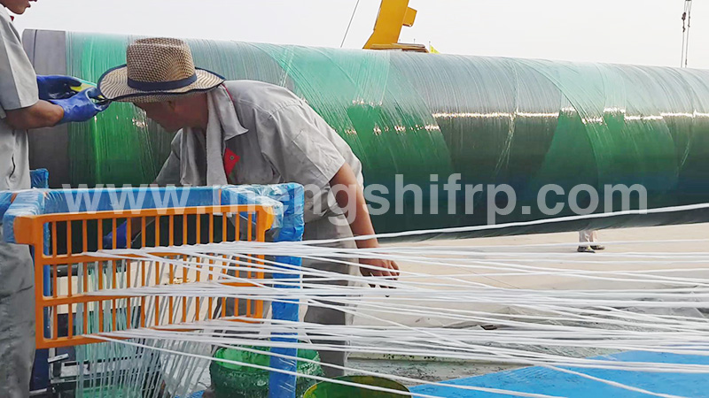 第三層:玻璃鋼保護層用機械濕法纏繞制作而成。其作用一是保護聚氨酯保溫層免遭機械硬物破壞,二是防腐防水,它的耐氣候性、耐酸性、耐海水性較好,但是,樹脂必須用306#、191#、189#、196#等不飽和樹脂。玻璃纖維及布必須用中堿或無堿纖維紗,禁止使用土堝拉絲而成的含堿量較高的纖維紗,以確保產(chǎn)品質(zhì)量。